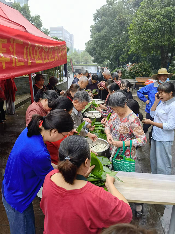 上午九點(diǎn)活動(dòng)準(zhǔn)時(shí)開始,現(xiàn)場(chǎng)人頭攢動(dòng),小區(qū)業(yè)主家人們熱情高漲,積極參加,領(lǐng)粽葉、領(lǐng)糯米、領(lǐng)繩子,會(huì)包的