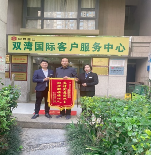 3月2日傍晚18時左右 ,11棟有位老人一個人在家里摔倒后不能起來,當時老人給兒子打電話,兒子在公司一下子趕不回來,于是電話聯(lián)系客服中心要我們先上門查看,客服中心接到電話后立即啟用項目應(yīng)急方案,通知客服和秩序部人員上門查看,并撥打了120急救電話,上門的物業(yè)工作人員在戶內(nèi)安撫摔倒的老人,同時整理好去醫(yī)院的衣物和物品,大概20分鐘左右救護車到達小區(qū),大家和醫(yī)護人員一起將老人從家中抬至救護車上。經(jīng)過醫(yī)院的治療老人現(xiàn)已順利出院,業(yè)主為表示感謝,特送錦旗一面!